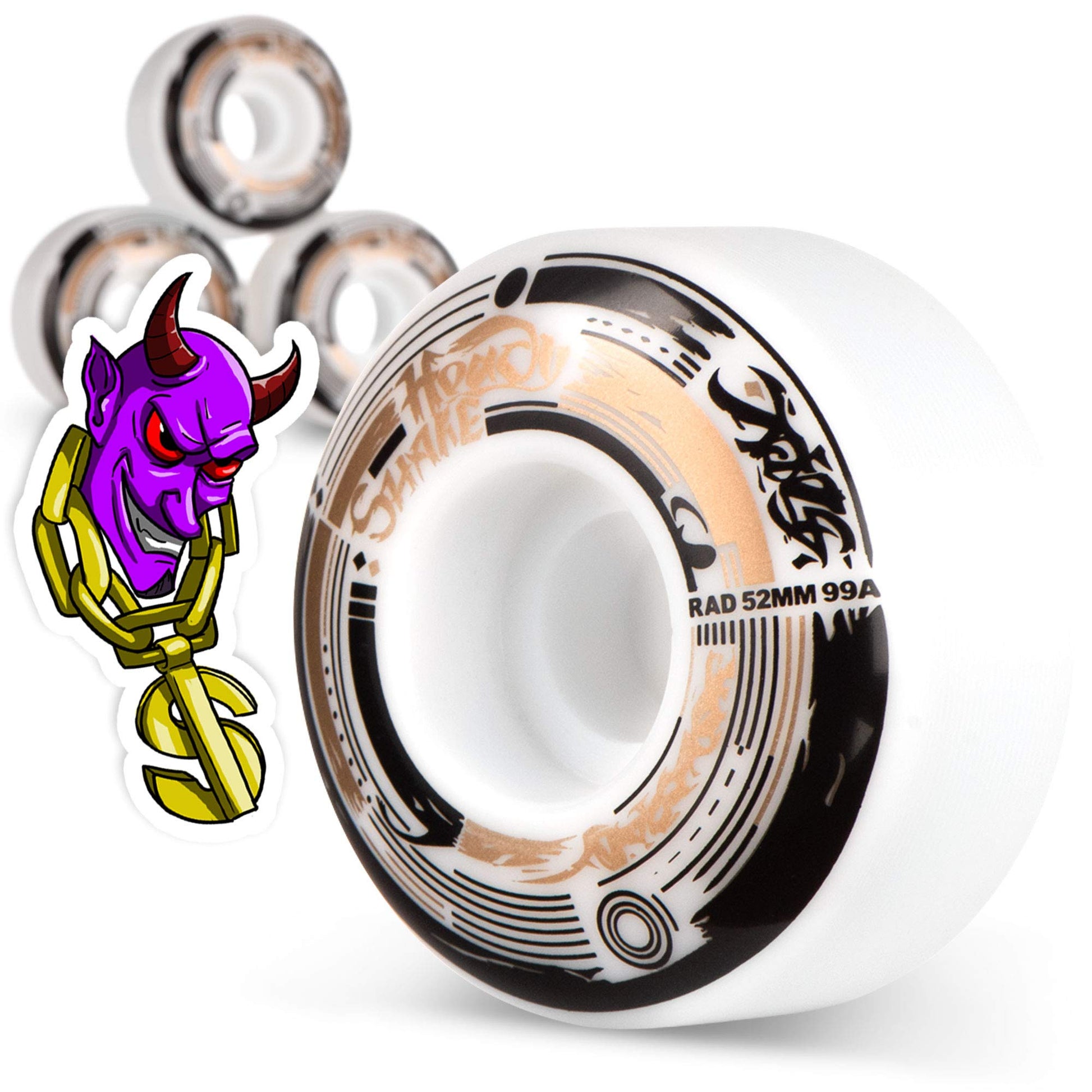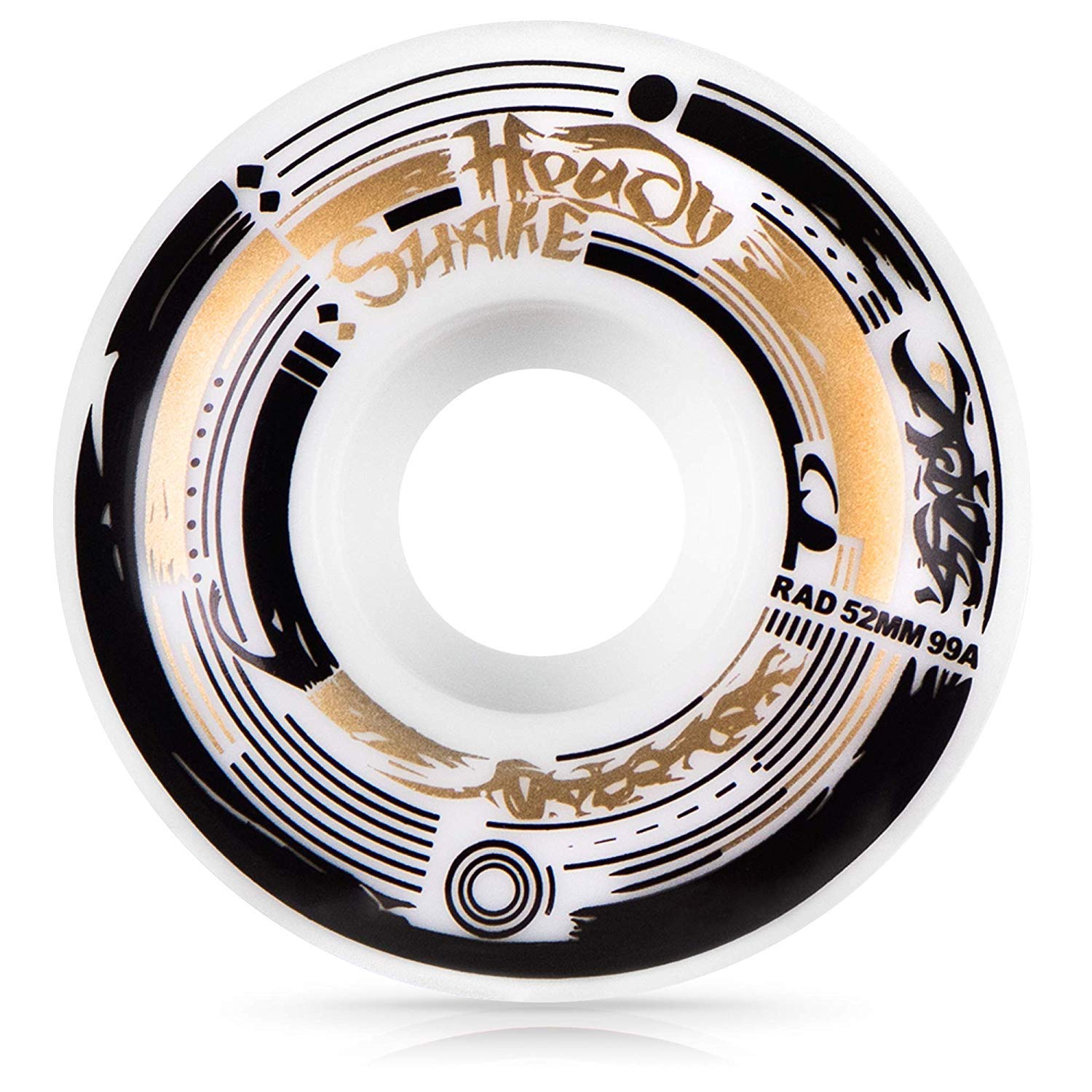 - RAD MODE WHEEL SHAPE – A classic 52mm thickness enhanced by Heady Shake skate professionals, 99A skateboarding wheels are made for extreme rides and bold tricks and won’t let you down when going hard at the park, in the pipe, or on the road.